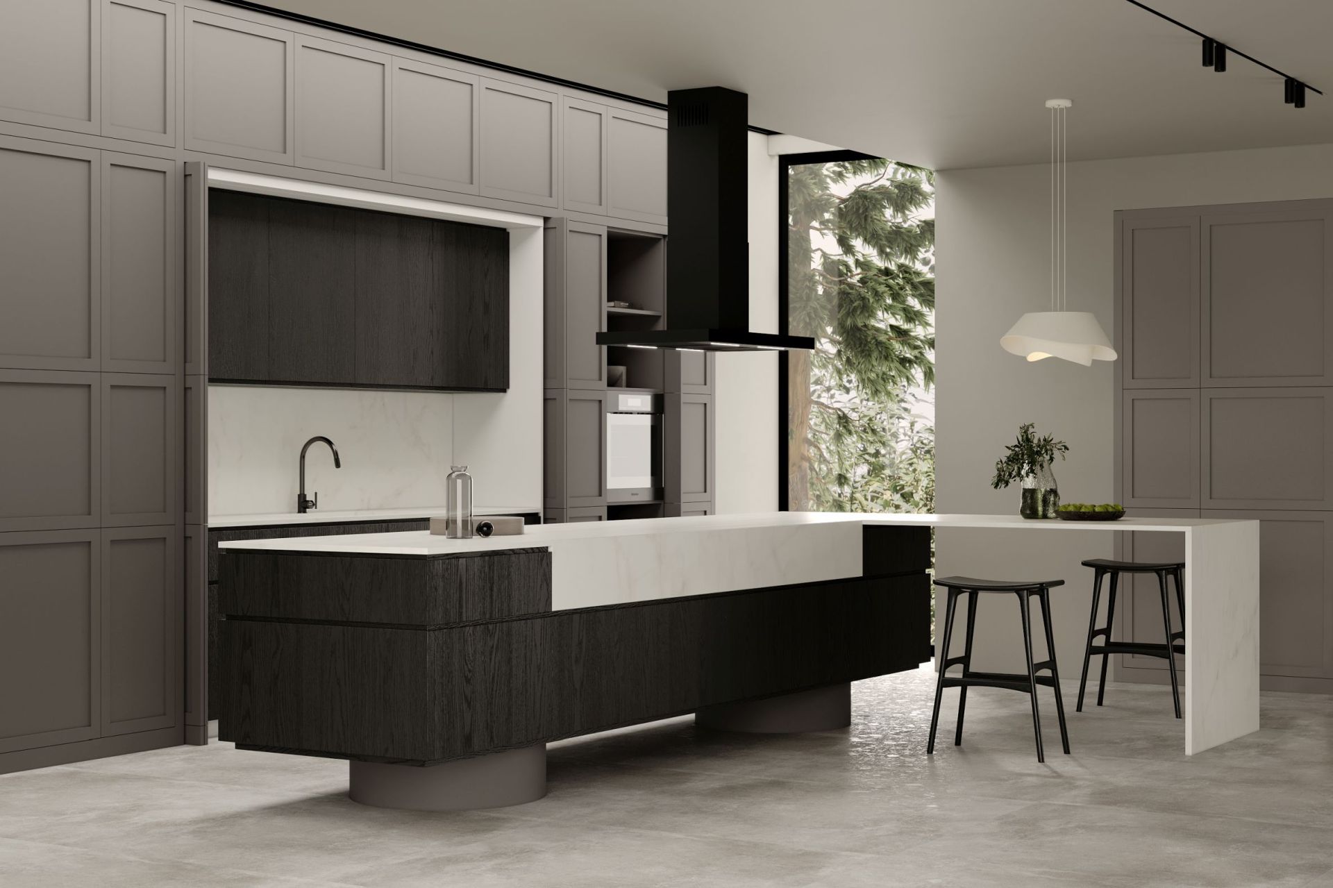 Frithængende emhætte Sento Island Strips Black Matt