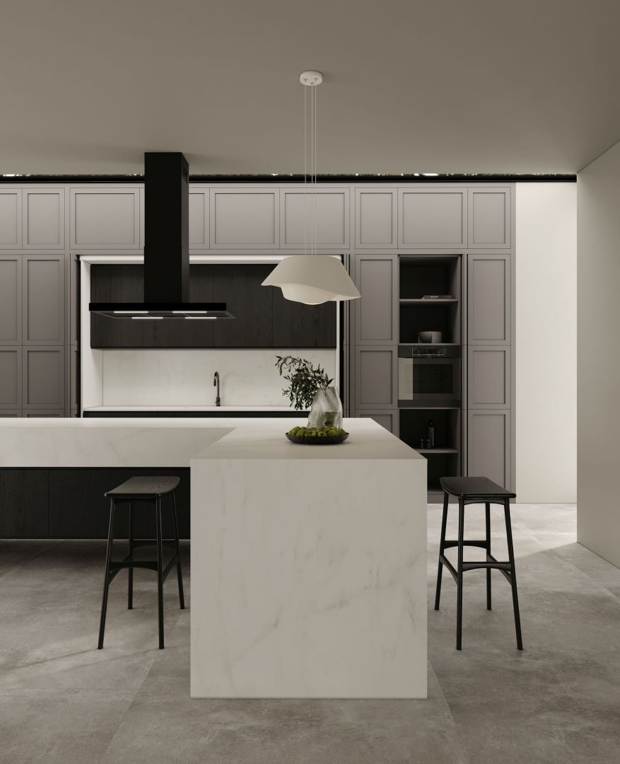 Den omvendte T-formede emhætte er yderst karakteristisk. Den legendariske form med en skorsten i midten og en "hylde" til småting henviser klart til gastronomien. Denne form er praktisk og elegant på samme tid. Det vil nemt passe ind i meget klassiske, minimalistiske og skandinaviske indretninger, men også i moderne, industrielle og loftindretninger.