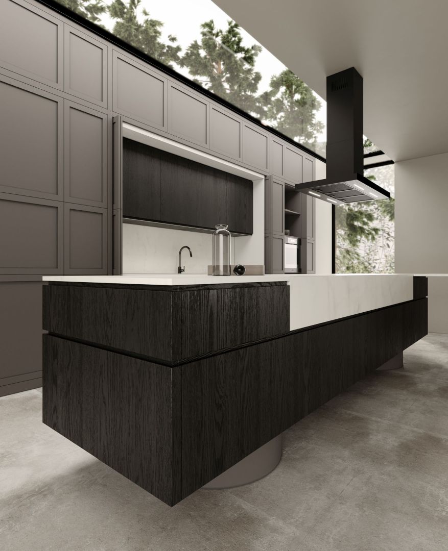 Der er også energibesparende LED'er i modellen Sento Island Strips Black Matt. Farvetemperaturen på det lys, der udsendes af linjelysene, er tæt på dagslys. På den måde virker farverne på den tilberedte mad mere realitetstro. Endnu en gang er fokus her på økologi og bekvemmelighed.