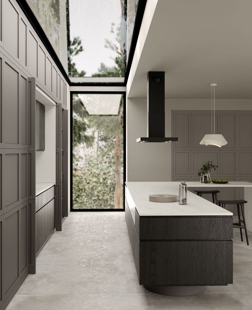 I dag er matsort utvivlsomt en meget populær farve, ikke kun til interiører, men også til husholdningsapparater. Navnet forpligter, og derfor er Sento Island Strips Black Matt også helt sort. Dette er en full black matt, hvor yderhuset, coveret, filtrene og også belysningsarmaturerne er sorte. Denne sort farve giver rummet karakter og klassisk elegance, samtidig med at det er let at holde den matte enhed ren. Mat sort er også ekstremt alsidig og passer til både mørke og lyse indretninger, hvor det enten passer harmonisk ind i omgivelserne eller skiller sig ud i kontrast. I kombination med varme, kolde eller pastelfarver vil det fremhæve charmen ved hele arrangementet. Som prikken over i'et er der en plade af hygiejnisk hærdet glas på forsiden og bagsiden af emhætten. Glas udgør den sidste detalje og skjuler betjeningselementerne i emhætten. Selvfølgelig er alt sort.