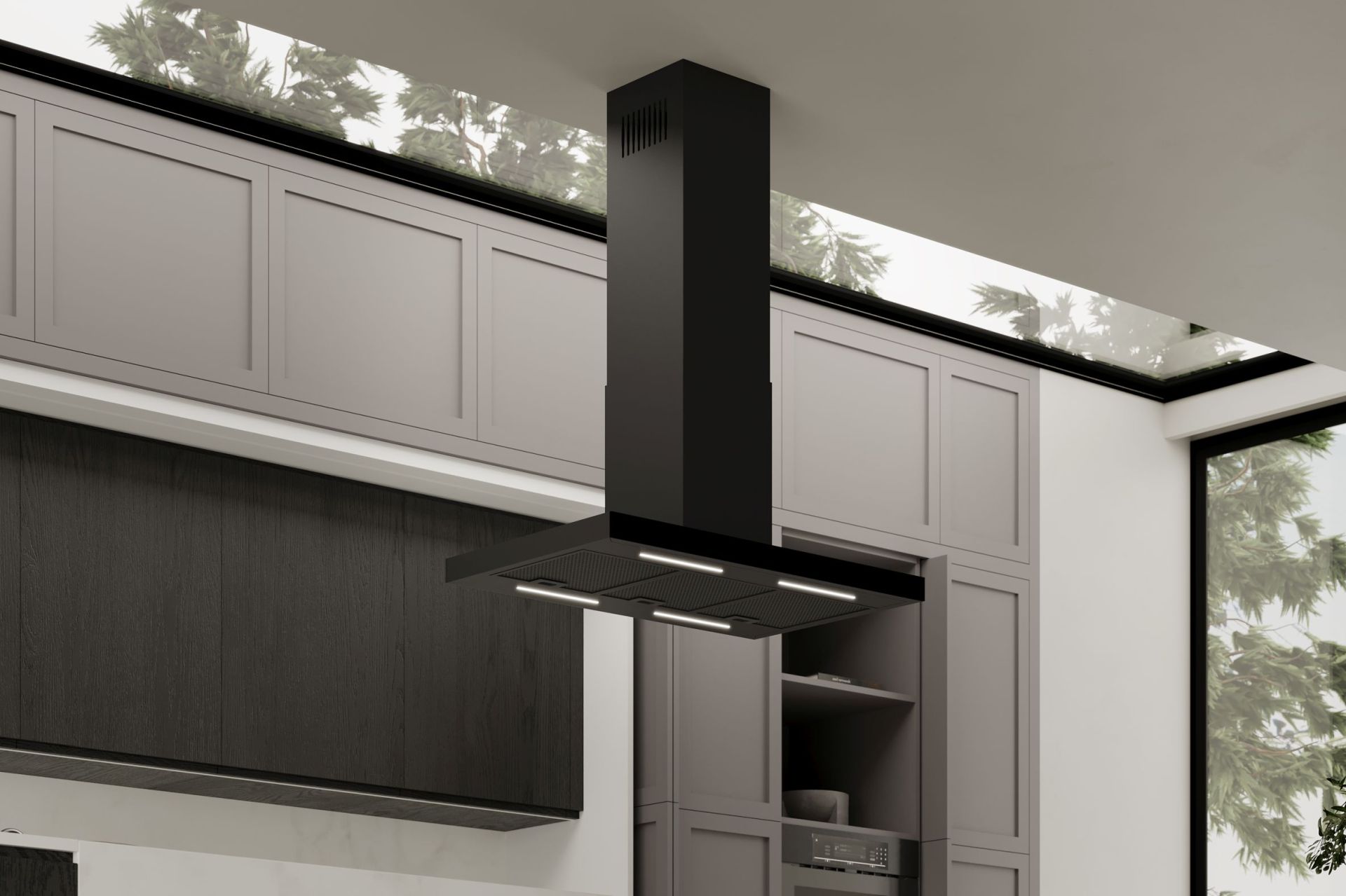 Frithængende emhætte Sento Island Strips Black Matt – komplettering: