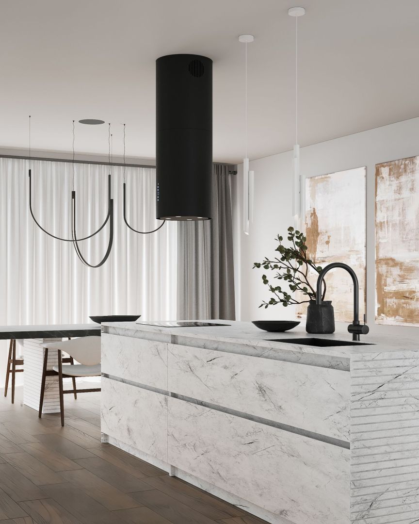ren elegance. i køkkenet ser den luksuriøst ud, og hvad angår effektiviteten, er jeg positivt overrasket, og så er den støjsvag. Stille og effektiv