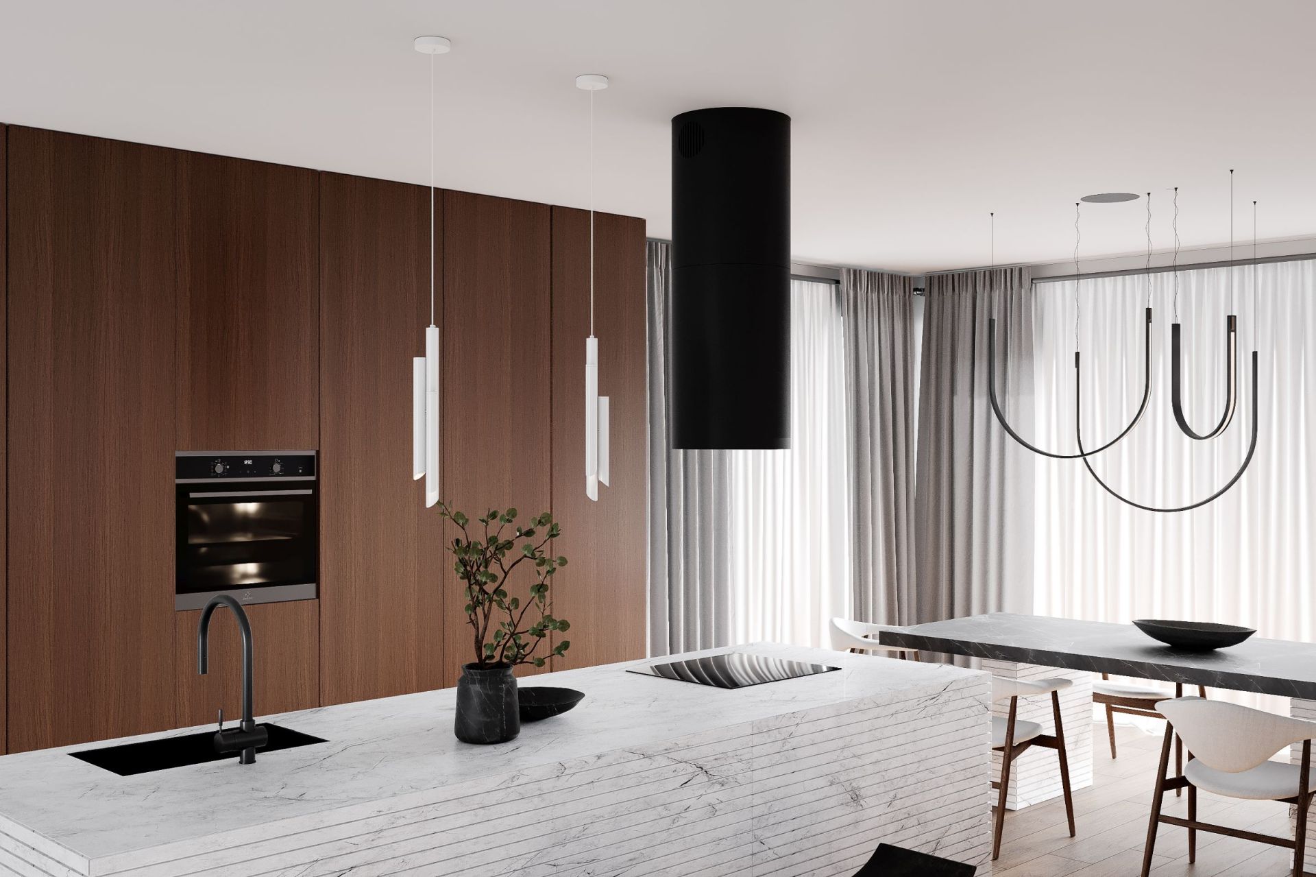 En eksklusiv version af en af de mest populære modeller i vores tilbud. Denne gang i en af de mest populære farver i dag - sort mat. Den unikke mønstereffekt opnås ved at kombinere dette materiale med hærdet glas. Det er en innovativ løsning. Glassets delikate glans med en dæmpet mat emhættefarve er utraditionel kombination men dog samtidigt meget praktisk. Emhætten er dermed yderst nem at vedligeholde. Derudover kan emhættens nedre låg nemt åbnes, hvilket giver nem adgang til filtrene. Rengøringen og vedligeholdelsen af denne model er en barneleg. LED-lysenes firedobbelte effekt giver en fremragende belysning af området omkring kogepladen, og emhættens sugeevne vil tilfredsstille de mest krævende kunder.