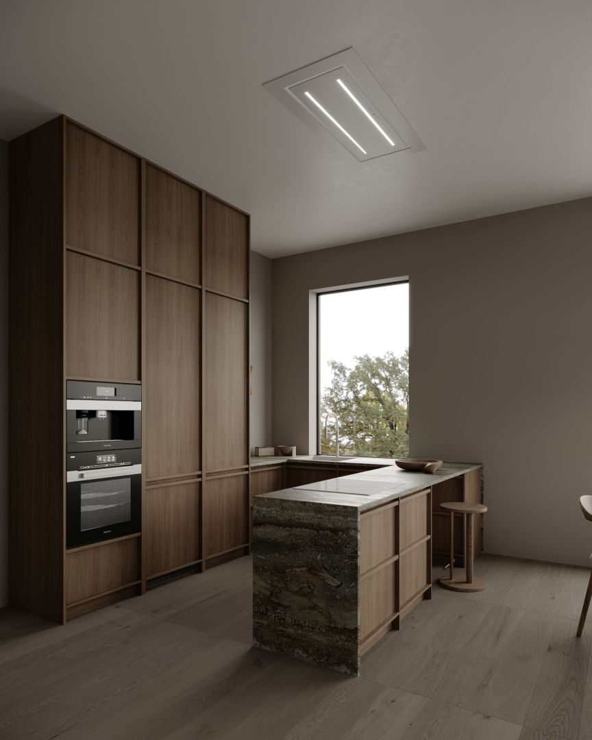 En emhætte har til hovedopgave at udsugning af madlavningsdampe. I Grand Super Slim er det en højtydende blæsermotor med en ydeevne på op til 900 m3/h, der er ansvarlig for dette. Loftemfanget har kantudsugning og kan også fungere i to driftstilstande: