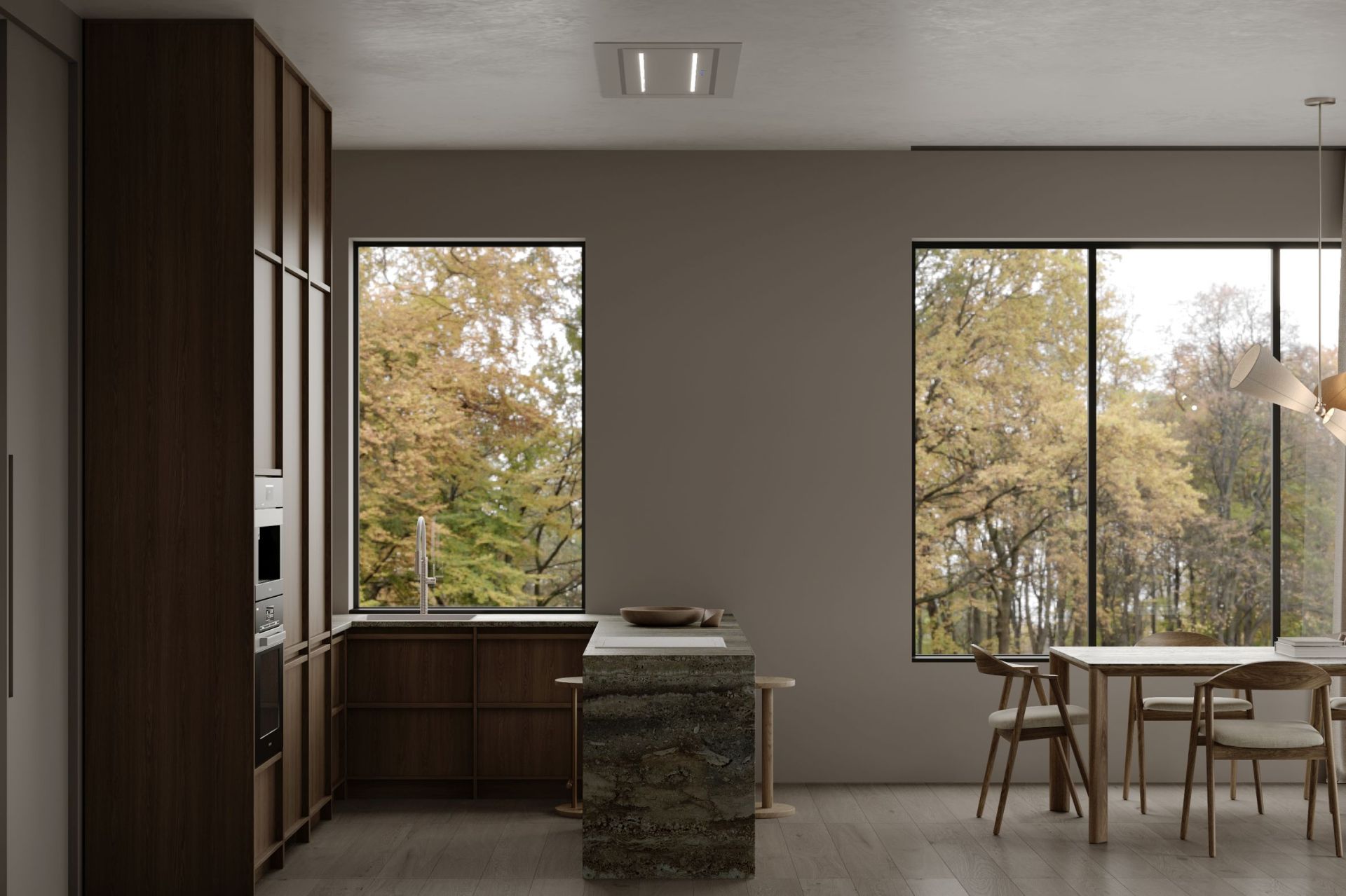 Det slanke loftemfang, som navnet antyder, meget slankt. Det skyldes, at den skal passe ind i det smalle rum mellem det nedhængte loft og loftet. Grand Super Slim kræver mindre end 16 cm ledig plads, og takket være den hurtige og enkle installation er det nemt at flugte med loftet. Det vil danne en enkelt, ensfarvet loftsflade. Emhætten er ideel til køkkener, hvor et asketisk, minimalistisk og strengt design er vigtigt. Det er på samme tid elegant, teknologisk avanceret og fungerer godt i et moderne interiør, hvor boligejerne ønsker stor frihed og plads.