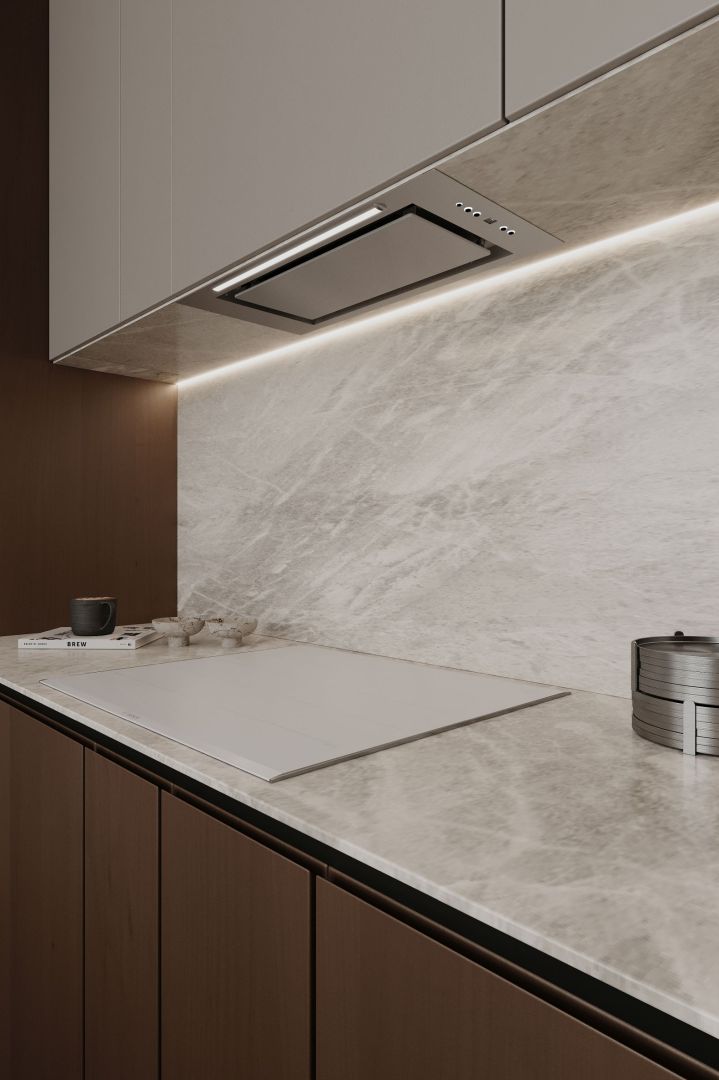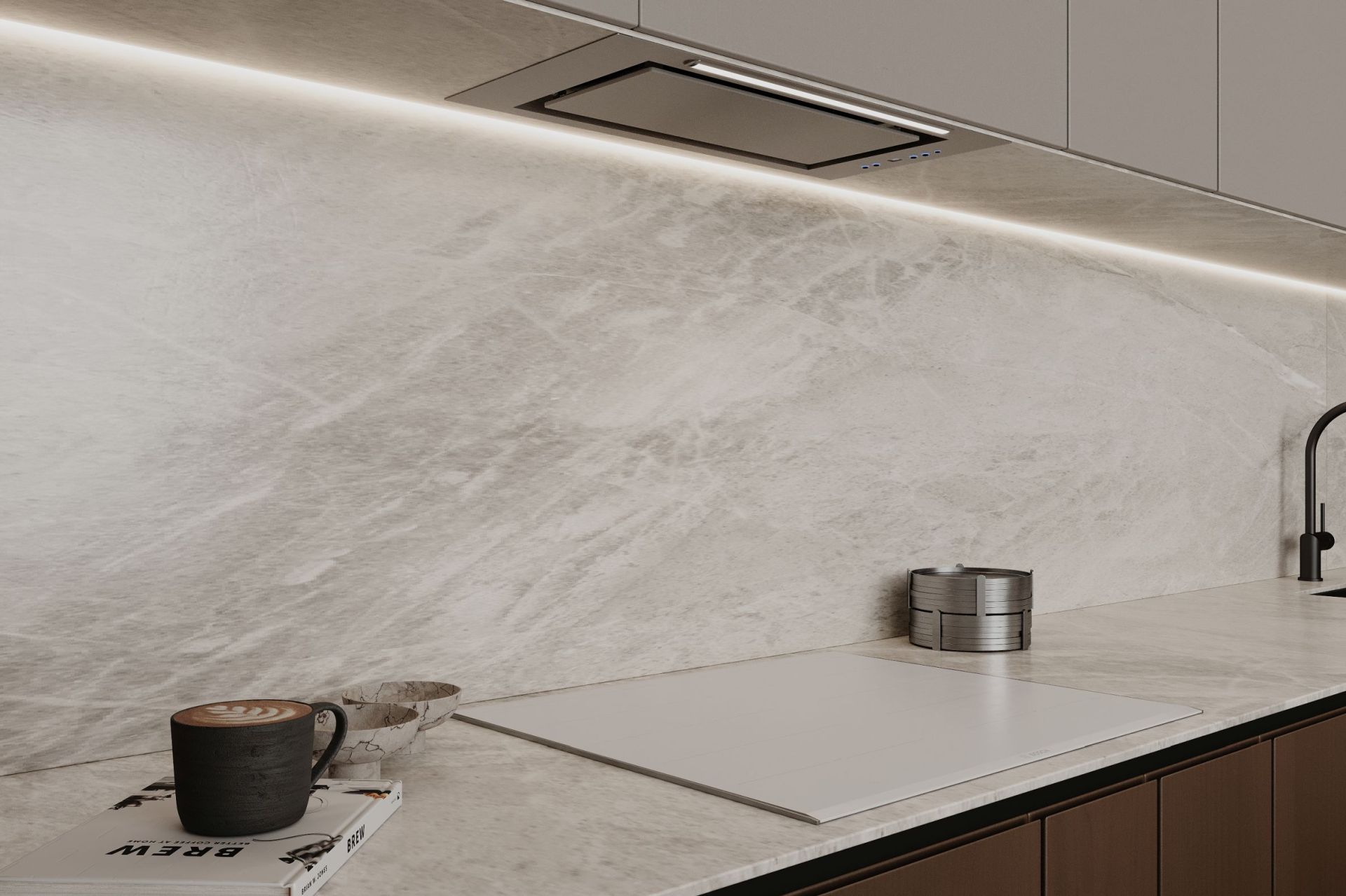 MICRA-emhætten fra Nortberg er den mest kompakte og æstetiske indbygningsemhætte på markedet. Med dens dimensioner passer den perfekt til køkkenskabet. Den fylder ikke særlig meget, så pladsen omkring emhætten kan frit udnyttes til andre ting. Når køkkenskabet åbnes, kommer en flot emhætte til syne. Emhættens frontpanel er udført af hærdet glas. Alt andet, inklusive motorhuset, er fremstillet af rustfrit stål INOX, som giver emhætten et æstetisk og simpelthen smukt look. Derudover er emhætten utrolig nem at holde ren. Alt hvad du behøver er en mikrofiberklud med et rengøringsmiddel til INOX og glas.